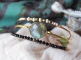 重ね着けバングル-ラブラドライト・ブラックスピネル・パール