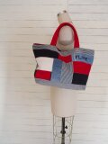 制作途中に排出された色合いの異なる古着( ジーンズ ハンプ生地)をツギハギして