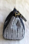 ネイビーとオランダ製リネンジャガード織(RolloStock購入)のバネポーチです。