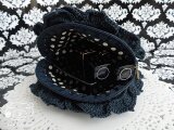 画像③:内布はルシアン生地のドット柄ブラックです。18cmのファスナーで開口部は広く、見えても可愛いレースタイプを使っています。