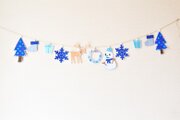 ブルー系でとても綺麗なクリスマスガーランドになっていますのでリビング、子供部屋、窓辺、玄関又はお店、学校などに飾ってクリスマスの時期を長~く楽しく過ごしてください♪