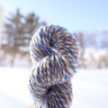羊毛に飾り糸を入れてつむいだ糸です。