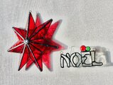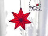 模様の異なるクリアガラスに、赤と緑のガラス玉を組合せた、フランス語でクリスマスの意味、NOËLのオーナメントです。