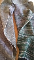 シルクウールの紡績糸(市販)に手紡ぎのウールを合わせて織りました。