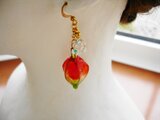 かわいいほおずきをピアスにしてみました。中にアクリルビーズを入れ,動くとゆらゆら揺れます。アメリカンフラワーの技法で作った鬼灯にレジンでコーティングしてあり丈夫です。*中は空洞ですので圧迫しないようお気を付けください。