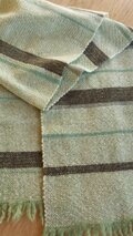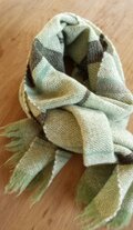 セージグリーン×オフホワイトに横縞を少し入れてシンプルに織りました。