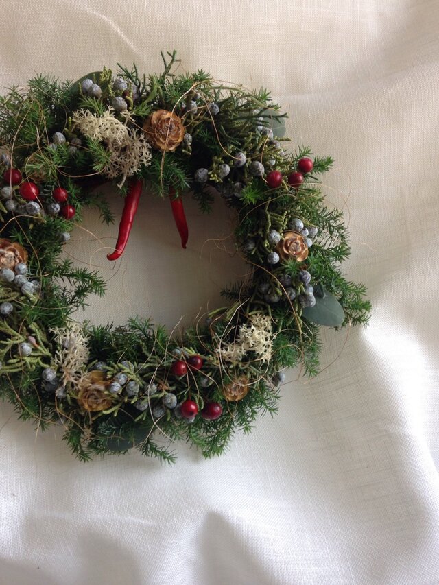 シンプルなリースで、フレッシュの杉を3種類使用、森林の香りをお楽しみ頂けるリースです。