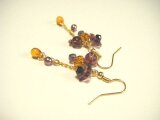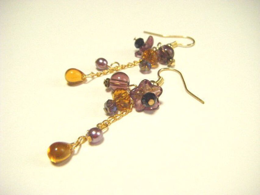 パープル色をした可愛らしいチェコフラワービーズに秋色をイメージしたトパーズ&パープル色のガラスビーズやチェコパールなどを合わせたお洒落なピアスとなっております☆