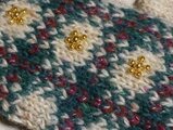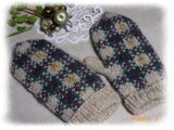 落ち着いたベージュツイード調のベースの上に、クリスマスカラーの赤・緑を編み込み模様にしたミトンです。