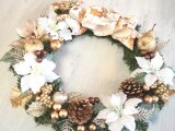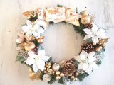 白とゴールドで大きくて上品なクリスマスリースを作りました。