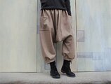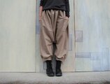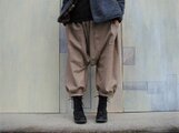 サルエルパンツとも近い、パンツですが、それほど股下さがりが気にならない優しい丸みのあるデザインです。
