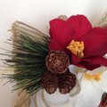 茶色の松ぼっくりとグリーンで引き締めて凛とした雰囲気に仕上げました。
