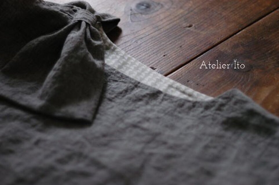 オーダーいただきました、リネンの肩リボンブラウスです♪