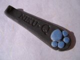 黒の手には黒泥(黒土)をつかい、肉球には紫、オレンジ、水色、ピンク、青のカラー粘土を貼り、「niku・Q」の刻印を押して、透明釉をかけ1240度で焼き上げた陶器です。