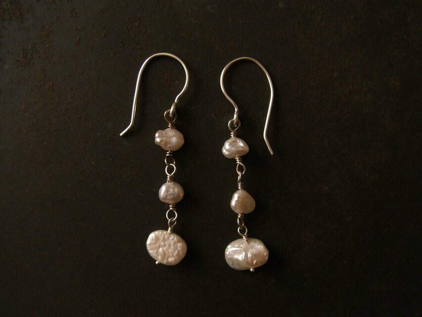 ナチュラルな形、柔らかい光がうつくしい淡水パールを使ってピアスに。