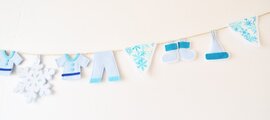 雪の結晶、サンタさんの服、ブーツ、帽子、三角フラッグ等が付いた上品でカワイイ~クリスマスガーランドに仕上がっています♪