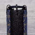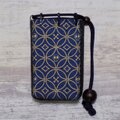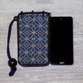 スマホケース 煙草入れ ポーチ デニム紺製 「髑髏(どくろ)七宝 金」