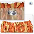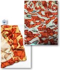 萱草色の地に抽象的な柄が人参色や褐色でろうけつ染めされた