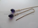 チェコプレシオサクリスタルガラスをひと粒あしらったシンプルなアメリカンチェーンピアス。チェーンの先端で光を集めて軽やかにかがやくドロップパーツはシャープなタンザナイトカラーが美しい上質なパーツです。