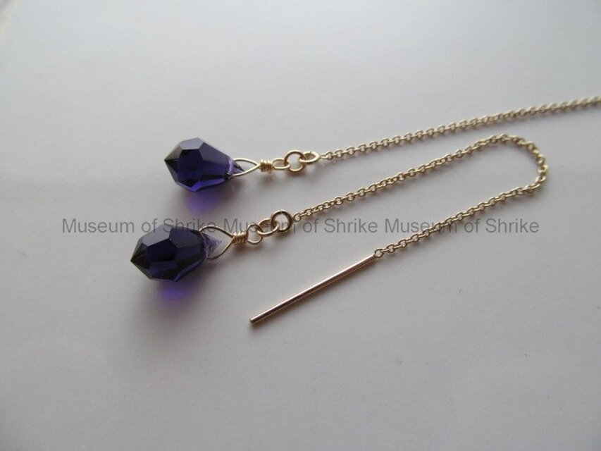 金具はすべてk14gfを使用。繊細なアズキチェーン部分をピアスホールに通す、ご自身でワンポイントの位置を調節できるアメリカンタイプのデザイン。軽量で、ピアスホールを傷めにくい仕様です。