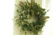 freshなネズ枝とサツマ杉にドライのプラチーナやユーカリ類をあしらったwreath。