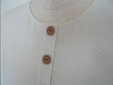 身頃部分が前開きで、お花柄が入った、可愛いウッドボタンを付けました。