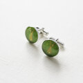 手描きの絵を樹脂で閉じ込めたカフスです。