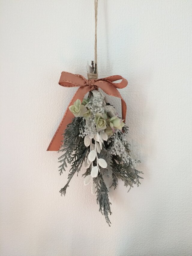 シルバーのかすみ草 オレガノを使い大人っぽいスワッグに仕上げました。