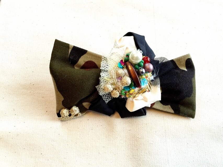迷彩柄のリボン風コサージュ
