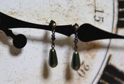 深緑のパールビーズに紫のビーズと茶色のスワロフスキーを合わせました。