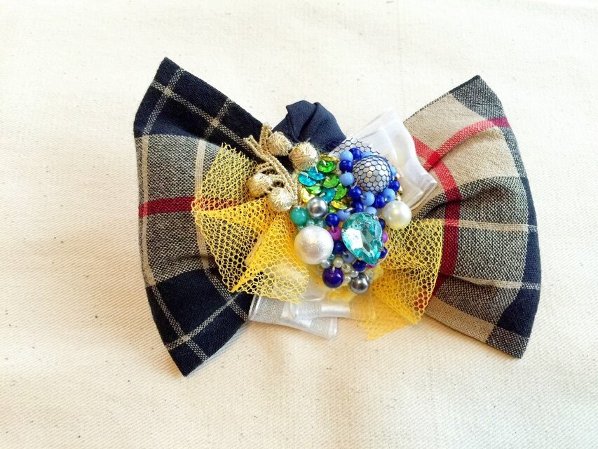 チュール、リボンを使用し、ビジュー、パール、スパンコール、ヴィンテージビーズ、ビーズなどを刺繍しています。