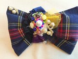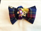 アシメトリーなリボン風のチェック柄コサージュ(ネイビー)