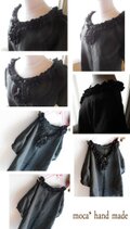 【受注製作/5.20再販売】リネン衿ぐりフリルチュニックブラウス★黒