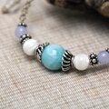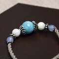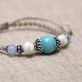 マザーオブパール、ブルーカルセドニを使ったブレスレットです。