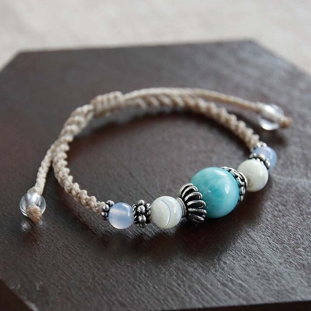 ■prima■ ラリマー×マザーオブパール ブレスレット (1点モノ)