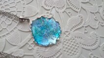 落ち着いたピンク色に夜空のような紺色と、2色が混ざった淡い紫色というニュアンスのある色合いが綺麗です。表面の細かい銀色も光り過ぎず上品ですね。個人的には星雲のような印象を受けました。素敵な作品をありがとうございます:)