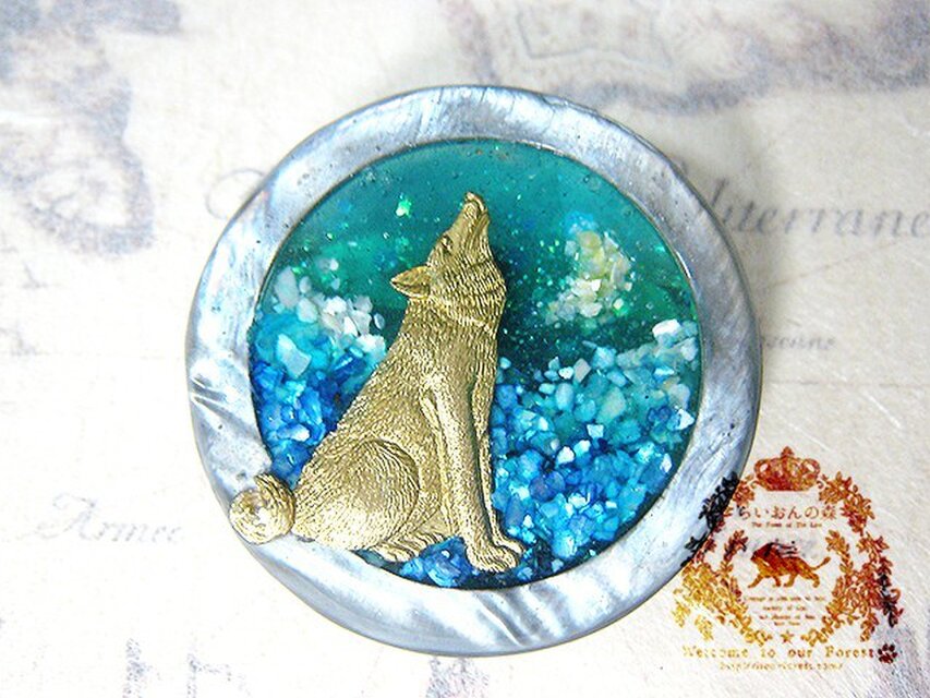 月夜に吠えるオオカミさんのブローチです。