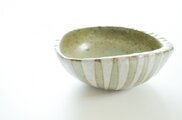 2つの釉薬を掛け分けた縦線模様の鉢。