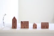 ヨーロッパの民家をモチーフに、無垢の木から削りだして小さな木の家を作りました。