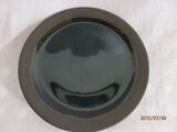 黒土焼き締めの皿に中央に緑紺の艶ありの銘々皿です。ほぼ同じ大きさで3枚あります。