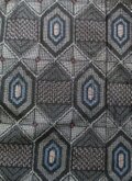 少し張りのある大島で亀甲模様の中の水色がいい感じの色合いです。