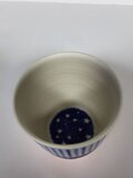 磁器、ロクロで成型、マスキングと、手描きのラインを混在させ、星模様を付けました。