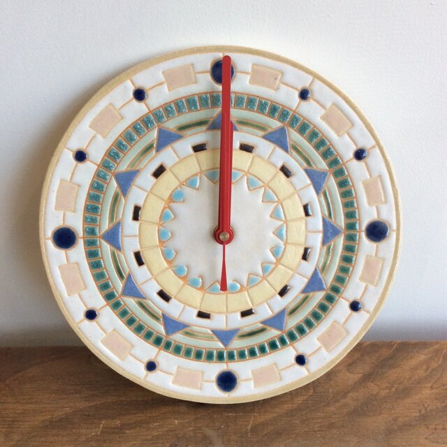 何色もの釉薬で塗り分けした時計です。