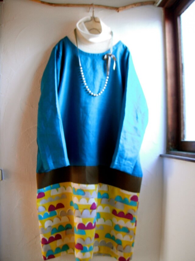 を身頃ベースに、切り換えワンピースを仕立ててみました。