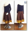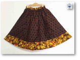 赤墨色に蜜柑色小紋×レトロな木の葉柄着物リメイクスギャザーフレアカート49