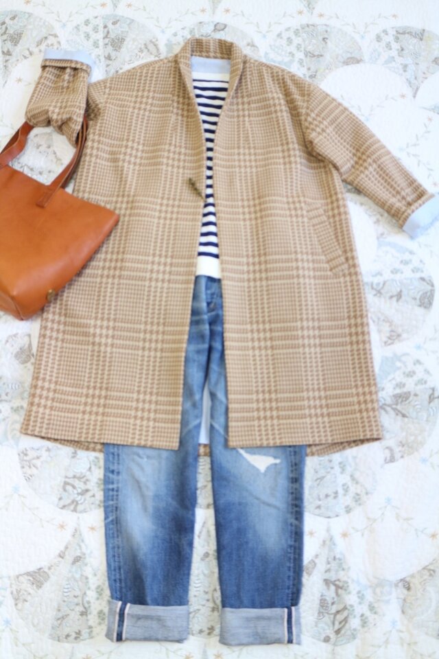 天然素材が心地よいこの季節にぴったりウール100%のチェック生地でコートを作りました。