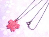 濃い色の桜貝を細かく砕いて桜型にしたネックレスです。