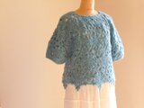 優しい色合いと繊細なデイジーモチーフの素敵な作品でした。 絶妙なデザインの袖が腕をほっそり見せてくれるのも素晴らしいです。手編みはやはりとても着心地がいいですね。