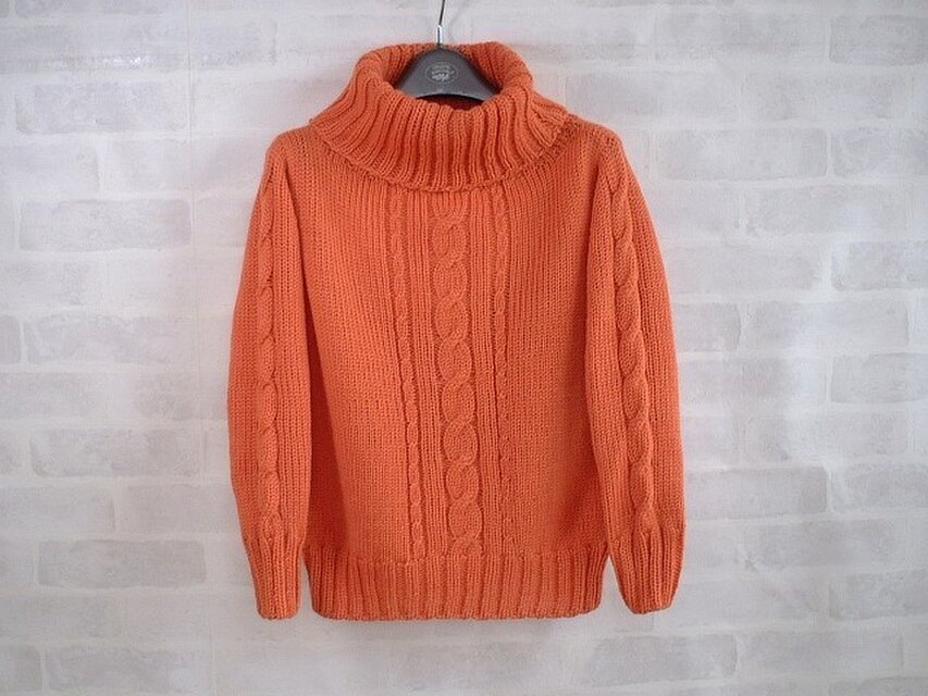 二目ゴム編みの大きなタートルネックがまるでスヌードみたい!