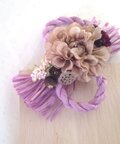 milk tea色のダリアにパープルのマム。
